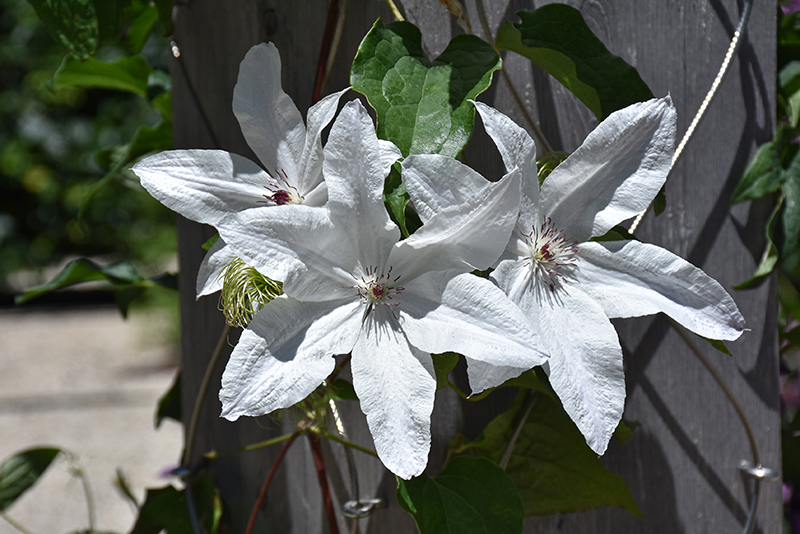 A wonderfully beautiful and hardy variety featuring a multitude of large, snowy white, star shaped flowers that bloom from early to late summer; a superb plant for pergolas, or containers; allow to climb through roses or other shrubs